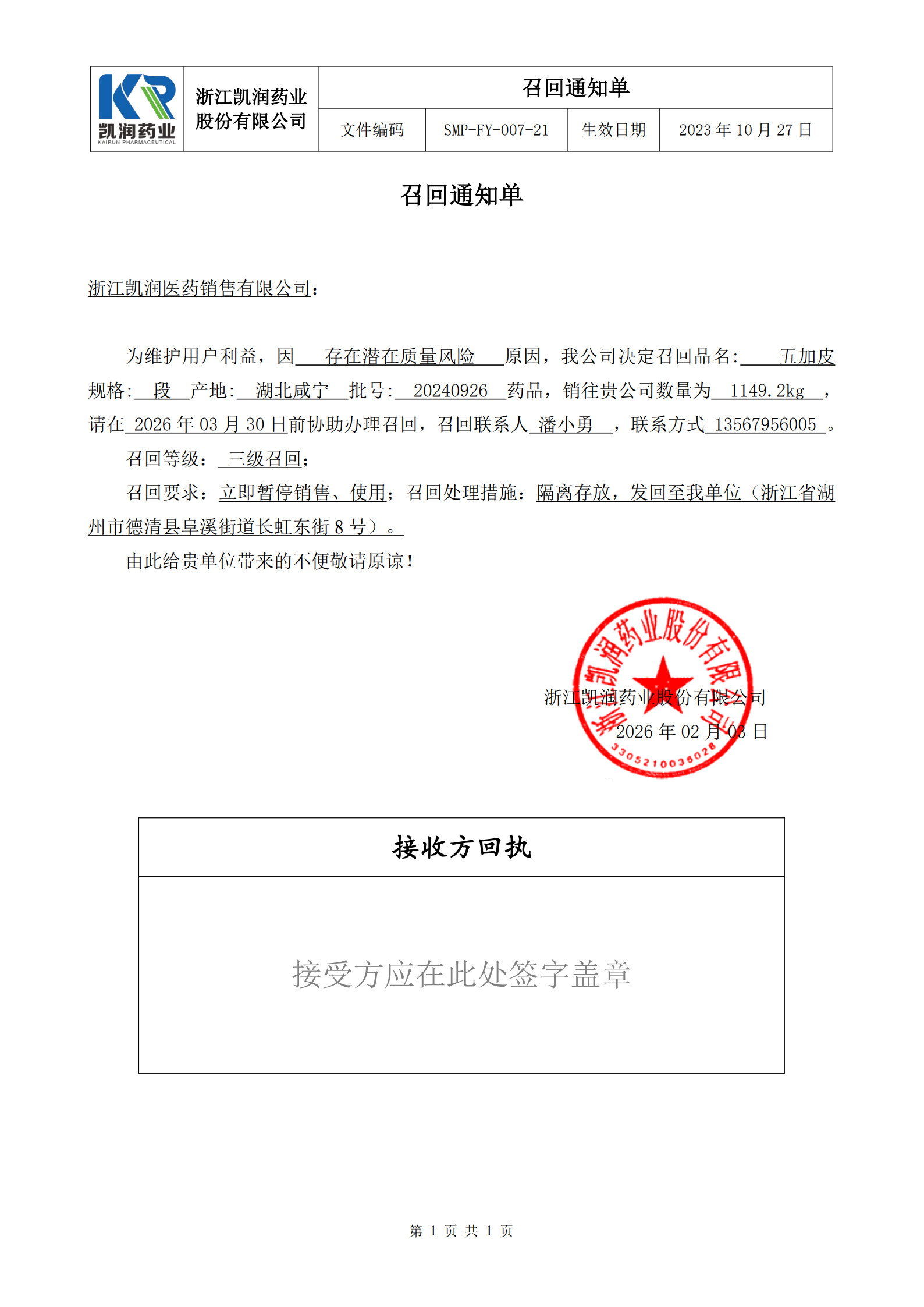 五加皮召回通知